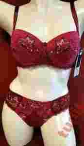 Przepiękny malinowy biustonosz ozdobione przepięknym haftem. Fason biustonosza na mniejszy biust. Pięknie podnosi i zbiera do dekoltu. Miseczki ozdobione pięknym haftem. Usztywniane miseczki z wyjmowaną dodatkową wkłądką pozwalają na idealne dopasowanie rozmiaru. Boczek na części koronkowy wzmocniony boczną fiszbiną z tyłu gładziutki z cztero - stopniową regulacją szerokości obwodu .