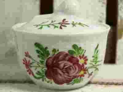 urokliwej,drobnej cukierniczki, pochodzącej z niemieckiej wytwórni porcelany