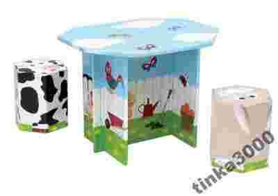 KROOOM TEKTUROWE MEBLE STÓŁ + 2 TABORETY K-281