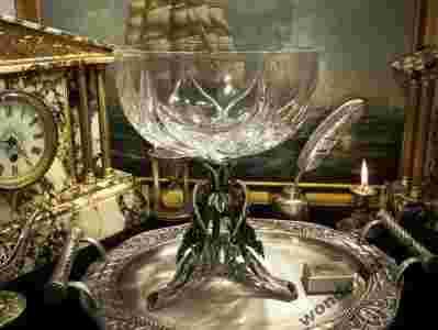 KRYSZTAŁOWA GŁĘBOKA MISA WSPANIAŁY CYNOWY STELAŻ