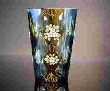 KRYSZTAŁOWY WAZON BIEDERMEIER Z EMALIĄ PIĘKNY