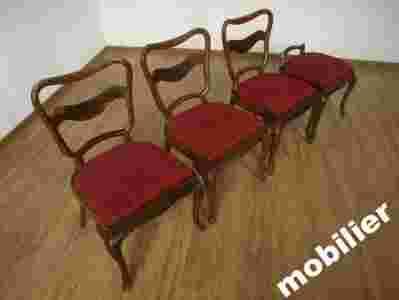 Mamy zaszczyt zaprezentować Państwu piękne krzesła.Meble powstały w latach trzydziestych ubiegłego stulecia i wykonane zostały w stylu art deco,do ich budowy natomiast użyto drewna orzechowego.Stan zachowania oceniamy jako dobry,brak jednego oparcia,do lekkiej renowacji.