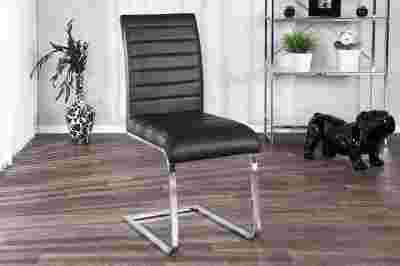 opis produktu Ponadczasowa forma skąpana w ekskluzywnym połączeniu stylowej czerni oraz nowoczesnego, metalicznego chromu. Profilowany kształt oparcia gwarantuje doskonałą wygodę i komfortowe użytkowanie krzesła Glorio Black, które wpasuje się w każde nowoczesne pomieszczenie. Całość oparta jest na płozach z chromowanego metalu, przemyślana konstrukcja zapewnia stabilność i bezpieczeństwo siedzenia. Piękna powłoka tapicerska zrobiona jest z wysokiej jakości- eko skóry, wykończonej poprzecznym szyciem. Całość prezentuje się wytwornie i elegancko. Mebel komponuje się dobrze zarówno ze stylem klasycznym, jak modernistycznym.