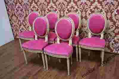Przepiękny Komplet sześciu krzeseł Ludwikowskich"Medaliony"Antyki siedzisko wyściełane trawą morską.Wiek ok 60lat.Nowy włoski materiał obiciowy., siedzisko na sprężynach. Krzesła wygodne stabilne. Krzesła charakteryzują się niebywałą elegancja. Stan Mebla jest bardzo dobry,gotowe do wstawienia.