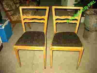 Dwa krzesła drewniane , przywiezione z niemieckiej bavari, wysokie 87 cm , szerokość siedziska 46 cm , krzesła do renowacji drewna i materiału , siedziska na sprężynach używane w dobrym stanie