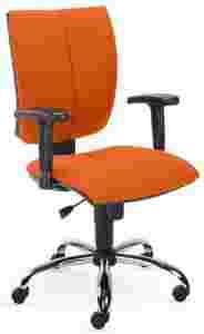 Krzesło obrotowe z miękkim tapicerowanym, ergonomicznie ukształtowanym siedziskiem, oparciem i podłokietnikami z tworzywa. Hydrauliczna regulacja wysokości siedziska, nastawienie kąta, wysokości i głębokości oparcia za pomocą mechaniki synchronicznej. Standardowo dostarczany chromowany krzyż nośny, samohamujące kółka do jazdy po dywanie. Obicie ze 100% poliolefiny z certyfikatem odporności przeciwpożarowej BS EN 1021-1 (test papierosowy).