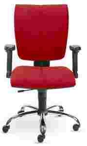 Krzesło obrotowe z miękkim tapicerowanym, ergonomicznie ukształtowanym siedziskiem, oparciem i podłokietnikami z tworzywa. Hydrauliczna regulacja wysokości siedziska, nastawienie kąta, wysokości i głębokości oparcia za pomocą mechaniki synchronicznej. Standardowo dostarczany chromowany krzyż nośny, samohamujące kółka do jazdy po dywanie. Obicie ze 100% poliolefiny z certyfikatem odporności przeciwpożarowej BS EN 1021-1 (test papierosowy).