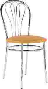 Aukcja dotyczy krzesła do kuchni o nazwie Venus. Krzesło jest na metalowej chromowanej ramie z miękkim tapicerowanym w skaju siedziskiem.