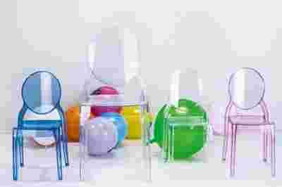 Wykonane z błyszczącego technopolimeru nylonu PA6 lub czystego poliwęglanu. Krzesła są odporne na promieniowanie UV. Test palności - samogaśnięcie V2*
