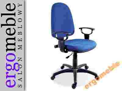Posiada twarde podłokietniki z polipropylenu i stabilną, nylonową podstawę jezdną. Kółka do powierzchni miękkich w standardzie lub twardych za dopłatą 20 zł .