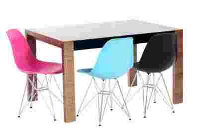 Krzesło inspirowane DSR o płynnym, łagodnym kształcie, charakteryzuje się bardzo dobrą ergonomią. Przyjemna dla oka forma i niewielkie wymiary gwarantują komfort użytkowania. Jest stabilne i lekkie. Ekstrawagancji dodaje krzesłu baza z chromowanymi nogami.