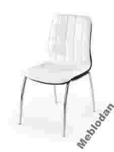 Krzesło z miękkim tapicerowanym siedziskiem i oparciem oraz metalowym stelażem.