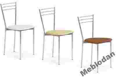 Krzesło z tapicerowanym siedziskiem oraz metalowym stelażem.