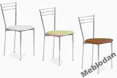 Krzesło z tapicerowanym siedziskiem oraz metalowym stelażem.