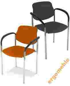 Metalowe podłokietniki z plastikowymi nakładkami.