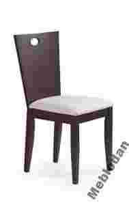 Krzesło z miękkim tapicerowanym siedziskiem oraz drewnianym oparciem i stelażem.