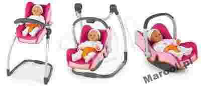 Krzesełko do karmienia lalek francuskiej firmy Smoby, z serii Maxi Cosi & Quinny. Od dziś Twoja córeczka będzie mogła wygodnie karmić swoja ukochaną lalke. Krzesełko, w ślicznej, różowej kolorystyce, jest przeznaczony dla lalek do 42 cm.Nowoczesna konstrukcja sprawia, że zabawka jest stabilna, a zarazem bardzo lekka. Krzesełko może również pełnić rolę huśtawki dla lalek, a po rozmontowaniu - fotelika samochodowego.