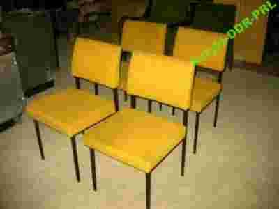 Komplet 4 sztuk krzeseł metalowych z tapicerowanym siedziskiem i oparciem , wysokie 80 cm , szerokość siedziska 44 cm używane w dobrym stanie