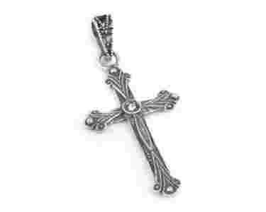 Krzyżyk Gotycki Srebrny z Cyrkonią Srebro 925