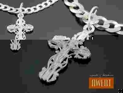 Krzyżyk srebrny dwustronny ozdobny z Jezusem