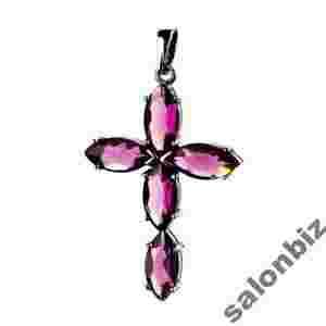 Krzyżyk srebrny z ametystem syntetycznym. Ag925.