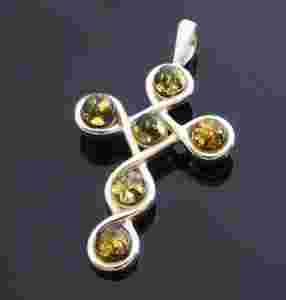 KRZYŻYK z zielonym bursztynem srebro 925