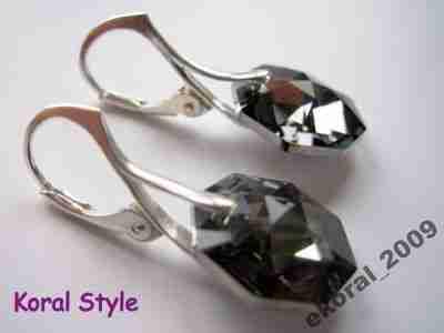 KS # Swarovski octagon14mm kolczyki - Silver Nigh