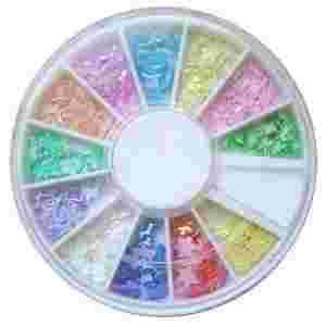 Misterne kształtki wykonane są z tkaniny powlekanej masą perłową mocno załamującą światło. Ozdoby te dostępne są w 9 kształtach i 8 kolorach. Bardzo dobrze nadają się do wtapiania w żel. Dzięki powłoce odpornej masie perłowej można je nakładać na paznokcie i pokrywać bezpośrednio lakierem lub utwardzaczem bez obawy o utratę intensywności barw. Perłowe kształtki są w wymiarze 3D i nie odstają od płytki paznokcia.