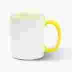 Kubek biały klasa A+ z żółtym uszkiem i obramówką pojemność 330 ml, średnica 8.2cm wysokość 9.5 cm. Kubek przeznaczony do wykonywania nadruków metodą sublimacji lub termotransferu w zgrzewarkach lub w piecach jak również do kalki i sitodruku. Prawdziwa klasa A+ z dużym połyskiem oraz wysoką bielą przeznaczony do mycia ręcznego ale dzięki bardzo trwałej powłoce polimerowej bardzo dobrze znosi mycie w zmywarkach i nawet po kilkudziesięciu umyciach w zmywarce zachowuje barwy. Maksymalna tolerancja różnic średnicy do 0,5 mm tak więc nie wymaga regulacji dociskiem przy wgrzewaniu.