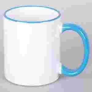 Kubek biały błękitny uchwyt, sublimacja
