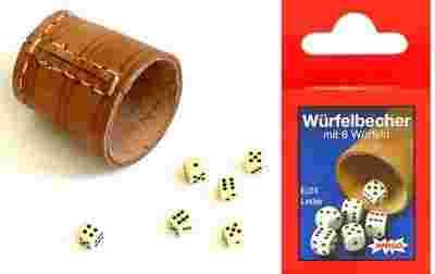 KUBEK do gry w kości /50mm/ SKÓRA + 6 kostek 7mm
