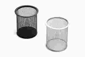 Kubek na długopisy ażurowy czarny/ srebrny