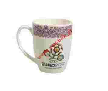 Kubek porcelanowy OWAL z kolekcji EURO 2012. Kubek posiada logo EURO 2012 oraz ornament ze stadionami na fioletowym tle. Pojemność kubka 300ml. Wykonany jest z najwyższej jakości porcelany new bone china. Nadają się do mycia w zmywarce oraz używania w mikrofalówce. Idealne dla każdego kibica piłki nożnej podczas Mistrzostw Europy! Kubek zapakowany jest w kolorowy kartonik, a więc znakomicie nadaje się na prezent.