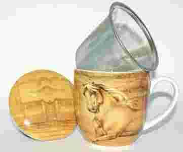 Piękny porcelanowy kubek z filtrem z motywem konia. Idealnie nadaje się do parzenia mieszanek owocowych oraz herbat naturalnych i aromatyzowanych. Doskonale sprawdzi się jako prezent dla bliskiej Ci osoby.