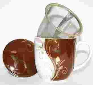 Kubek porcelanowy z zaparzaczem Kwiaty Brązowy