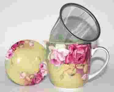 Piękny porcelanowy kubek z filtrem z pięknym, kwiatowym motywem. Idealnie nadaje się do parzenia mieszanek owocowych oraz herbat naturalnych i aromatyzowanych. Doskonale sprawdzi się jako prezent dla bliskiej Ci osoby.