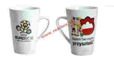 Kubek porcelanowy PROSTY z kolekcji EURO 2012. Kubek posiada logo EURO 2012, postacie maskotek EURO 2012, a mianowicie słynni Slawek i Slavko oraz napis "RAZEM TWORZYMY PRZYSZŁOŚĆ". Cały nadruk jest utrzymany w kolorystyce EURO 2012. Pojemność kubka 300ml. Wykonany jest z najwyższej jakości porcelany super white. Nadają się do mycia w zmywarce oraz używania w mikrofalówce. Idealne dla każdego kibica piłki nożnej podczas Mistrzostw Europy!