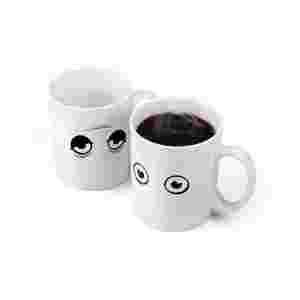 Termoaktywny kubek pobudka - wake-up mug. Po wlaniu do kubka gorącego napoju, wzór na kubku zmienia się - oczy z zaspanych robią się przytomne i rozbudzone. Po wystygnięciu kubek wraca do pierwotnego zaspanego wzoru.