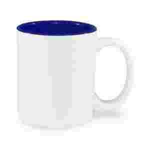 Biały kubek ceramiczny z wnętrzem w kolorze granatowym, z powłoką JS Coating powlekany warstwą poliestru do wykonywania nadruków w technologii sublimacji. Możliwość zakupu od jednej sztuki.