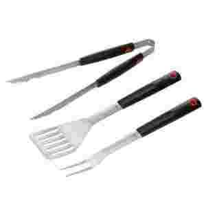 Trzyczęściowy komplet akcesorii do grilla marki Kuchenprofi. Wykonane ze stal nierdzewnej, zaopatrzone w wygodne nienagrzewające się rączki. Rączki posiadają otwory umożliwiające powieszenie na haczykach lub relingach.