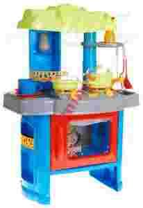 Do Państwa dyspozycji przedstawiam 2 – palnikową kuchenkę z okapem, półkami na przyprawy, wieszakiem na łyżki, kranem, zlewem oraz piekarnikiem. Kuchenka jest wyposażona w dwa podświetlane palniki, z których każdy posiada niezależny wyłącznik. Gdy go uaktywnisz, usłyszysz dźwięk gotowanej potrawy.