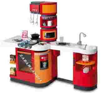 Zabawka kuchnia dla dzieci Tefal Cook Master firmy Smoby. Wspaniała propozycja dla każdej dziewczynki, która chce się poczuć prawdziwą gospodynią. Urocze kolory oraz dźwięki prawdziwego gotowania dodatkowo uprzyjemnią każdą minutę zabawy. Kuchnia posiada dużo miejsc do zabawy, jest wyposażona jak prawdziwa kuchnia, nie zabrakło w niej nawet maszyny do lodu! Kuchnia posiada palnik z płomieniami, lodówkę, ekspres do kawy piekarnik, okap i zlewozmywak. Jej wyposażenie sprawi, że zabawa nabierze wyjątkowo realnego charakteru. W skład zestawu wchodzą również różne akcesoria: talerze, sztućce, garnek, kubeczki, oraz imitacje artykułów spożywczych, także kapsułki z kawą i kostki lodu. Bogactwo akcesoriów sprawia, że kuchnia wygląda jak ta prawdziwa, w której na co dzień gotuje mama. Teraz każda mała kucharka, będzie miała pod ręką wszystkiego czego potrzebuje. Kuchnia Cook Master dzięki doskonałemu wykonaniu oraz ciekawemu wzornictwu zachwyci nie tylko małe kucharki, ale także ich rodziców. Wysoka jakość wykonania sprawi, że zabawa będzie nie tylko wesoła ale także bezpieczna. Do prawidłowego działania zabawki wymagana jest 2 bateria CR2032 (załączono do zestawu).