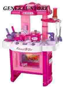 Kuchnia wyposażona jest w piekarnik, zlew, posiada 2 palniki sterowane pokrętłami. Po przekręceniu pokręteł dziecko usłyszy realistyczne dźwięki gotowania a diody symulujące ogień z palnika zaświecą się! Po włączeniu piekarnika w środku zaświeci się światło a dziewczynki usłyszą dźwięk mikrofali. Po odmierzonym czasie kuchnia wyłączy się.