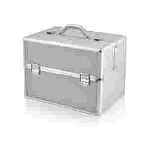 Idealny dla kosmetyczek i manicurzystek mobilnych z aluminiowym stelażem, w modnym, srebrnym kolorze, zaprojektowany tak aby można było w nim zmieścić wszystkie potrzebne akcesoria. W środku kuferka znajduje się 6 wysuwanych półeczek, a pod nimi obszerny pojemnik mieszczący swobodnie lampę UV 36 W. Wnętrze wyścielone jest czarnym, aksamitnym, miłym w dotyku materiałem.