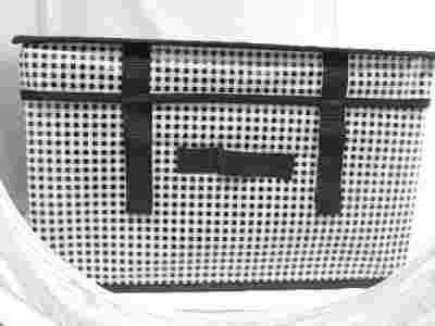 Przedmiotem aukcji jest KUFEREK Z POKRYWĄ - ORGANIZER (BIAŁO-CZARNY W KRATKĘ) - 1 szt. POJEMNIK-ORGANIZER (BIAŁO-CZARNY W KRATKĘ)