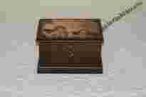Przedmiotem aukcji kuferek z aniołkami drewniany na biżuterie. Wys 11 cm, szer, 17 cm.