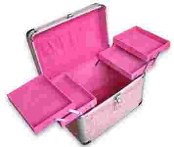 Kuferek rozowy zamszowy kosmetyczka kosmetyczki