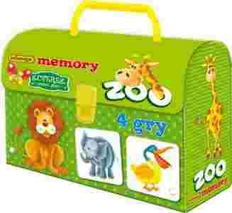 Kuferek zawiera 40 sztuk twardych kartoników, na których znajduje się 20 par zwierząt, oraz instrukcję do 4 gier