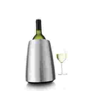 Kubełek na butelkę wina z serii Elegant to propozycja holenderskiej marki Vacu Vin. Marka Vacu Vin słynie na całym świecie z produkcji praktycznych akcesoriów do kuchni, domowego barku czy salonu. Opatentowane wzornictwo i niezwykła funkcjonalność jej wyrobów, sprawiają, że są one rozpoznawane i chętnie wybierane przez Klientów na całym świecie. Kubełek na butelkę wina odznacza się elegancką, nowoczesną formą. Zastosowano w nim niezwykle praktyczne rozwiązanie pozwalającym łatwo i w krótkim Kubełek na butelkę wina z serii Elegant to propozycja holenderskiej marki Vacu Vin. Marka Vacu Vin słynie na całym świecie z produkcji praktycznych akcesoriów do kuchni, domowego barku czy salonu. Opatentowane wzornictwo i niezwykła funkcjonalność jej wyrobów, sprawiają, że są one rozpoznawane i chętnie wybierane przez Klientów na całym świecie. Kubełek na butelkę wina odznacza się elegancką, nowoczesną formą. Zastosowano w nim niezwykle praktyczne rozwiązanie pozwalającym łatwo i w krótkim czasie schłodzić trunek bez konieczności zamrażania kostek lodu, a później usuwania roztopionej wody i uważania na śliską butelkę. Produkt posiada wkłady, które po schłodzeniu w zamrażalce, umieszcza się miedzy podwójnymi ściankami naczynia. W ciągu zaledwie kilku minut elementy te przekazują niską temperaturę butelce wina i utrzymują jej chłód przez kolejne godziny. Kubełek na butelkę wina z serii Elegant dostępny jest w dwóch wersjach: stalowej oraz wykonanej z tworzywa sztucznego. Materiał:stal nierdzewnatworzywo sztucznesubstancja chłodzącaGwarancja:2 lata od producenta