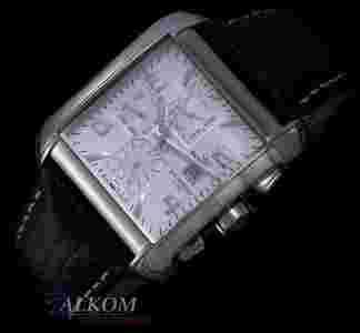 KOLOR: cyferblat - srebrny trójwymiarowy, koperta stalowa w miejscu przy pasku satynowana. Pasek czarny z jasnym przeszyciem
